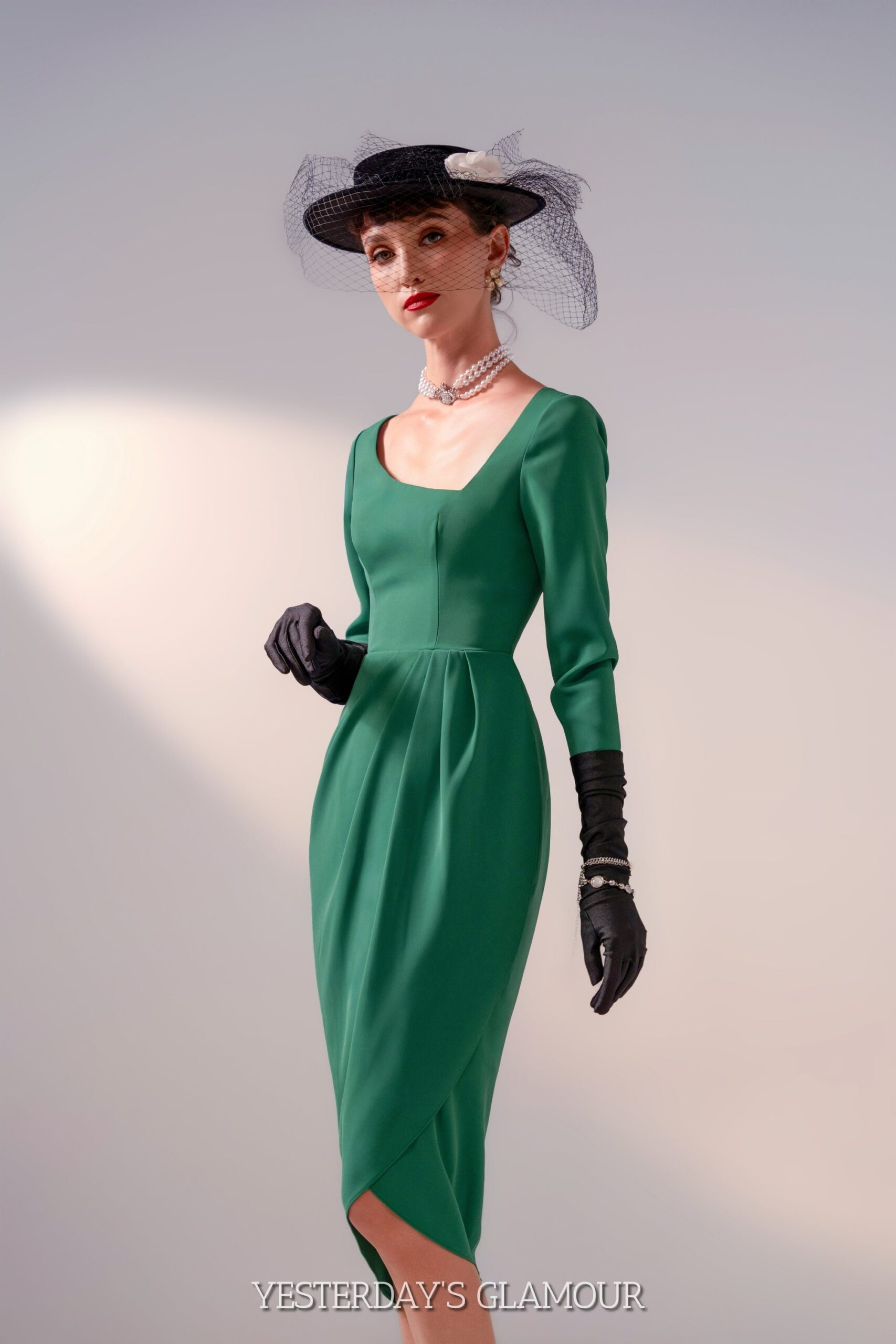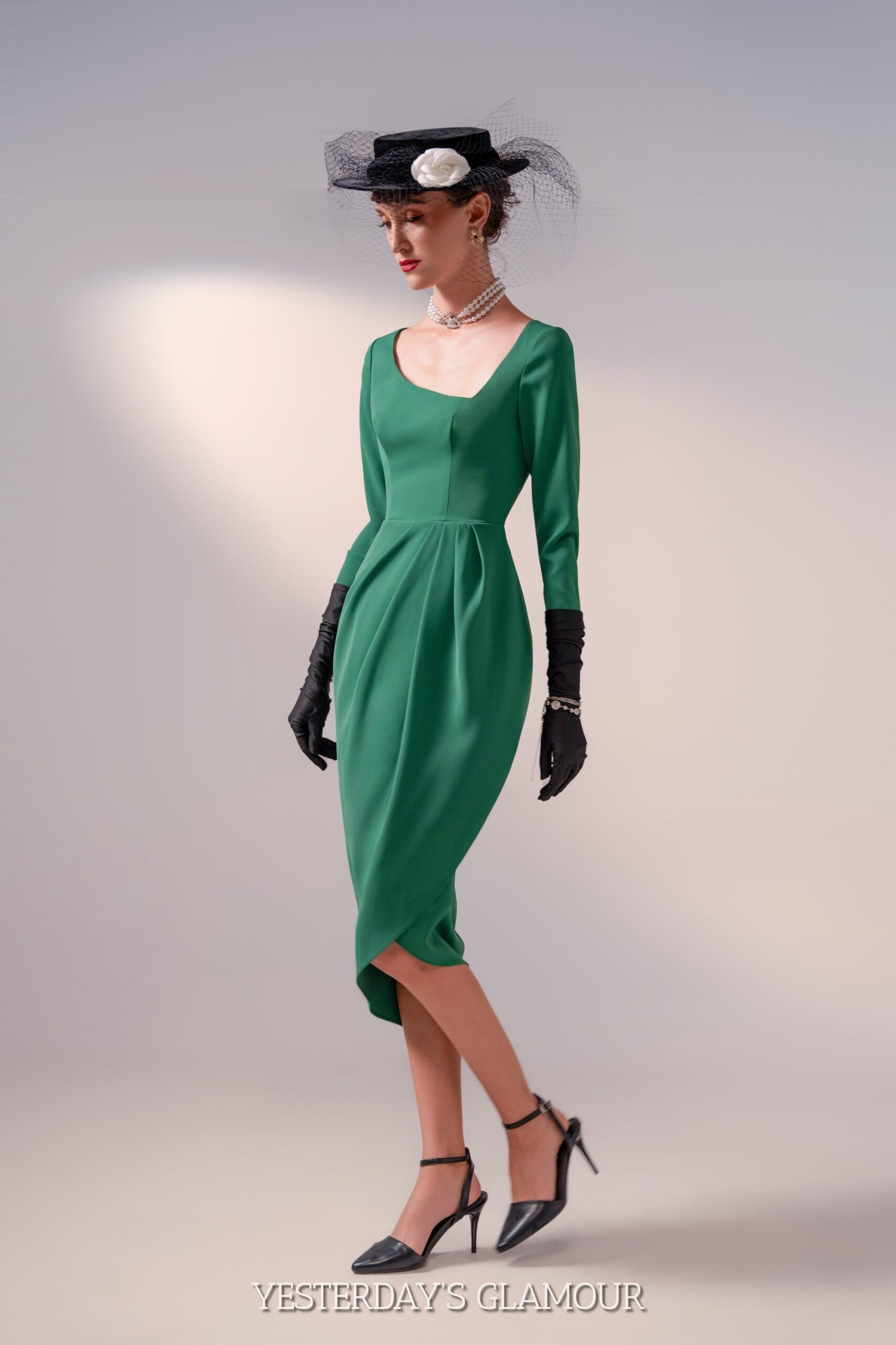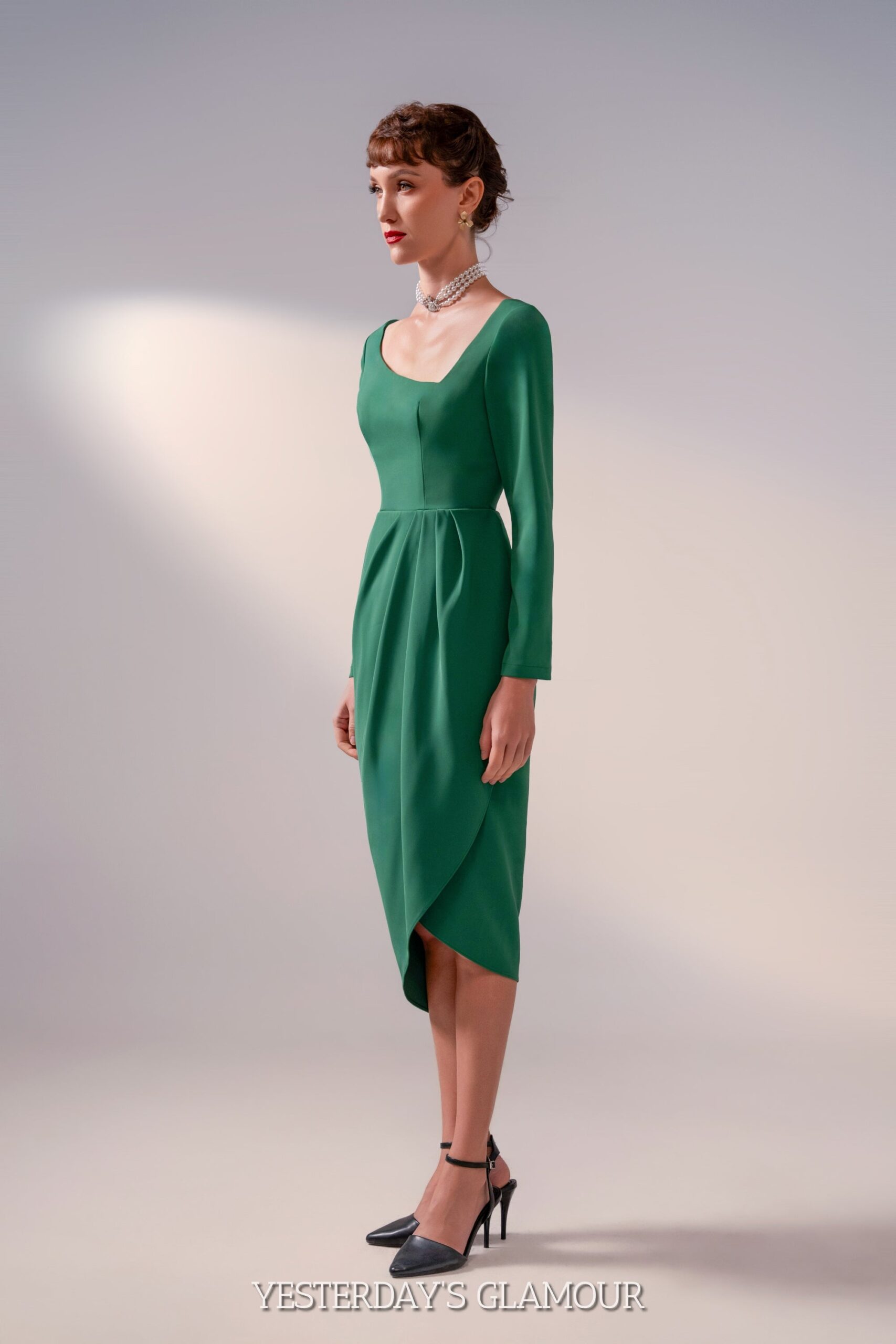 Are you in search of a beautiful. versatile. and fashionable pencil dress? Look no further! Our retro-style dress embodies the timeless appeal of the 1950s. With its long sleeves and asymmetrical neckline. this dress exudes vintage charm while offering a contemporary twist. The tulip silhouette gracefully enhances your curves. making you feel confident and elegant. The asymmetrical neckline is a beloved classic that has resurfaced as the next must-have style. Embrace the allure of this vintage-inspired dress and elevate your fashion game to new heights.