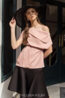 JENNIFER One Shoulder Short Sleeves Blouse | Loose Blouse Women Silk | Oversized Satin Blouses | Summer Casual Blouse | Modern Top